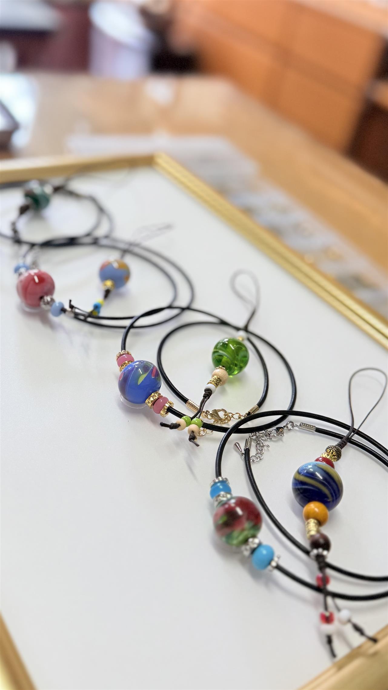 とんぼ玉作り体験ととんぼ玉を使ったアクセサリーなど展示販売しています。