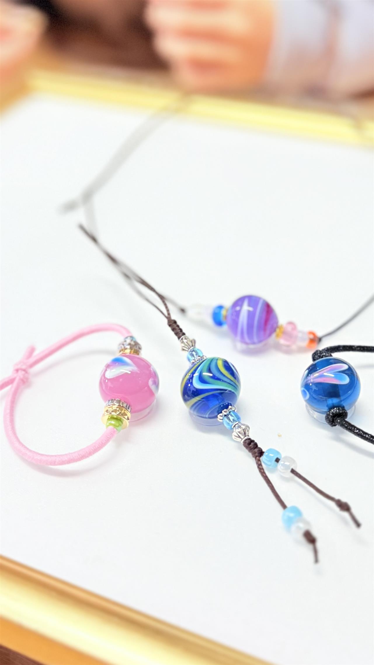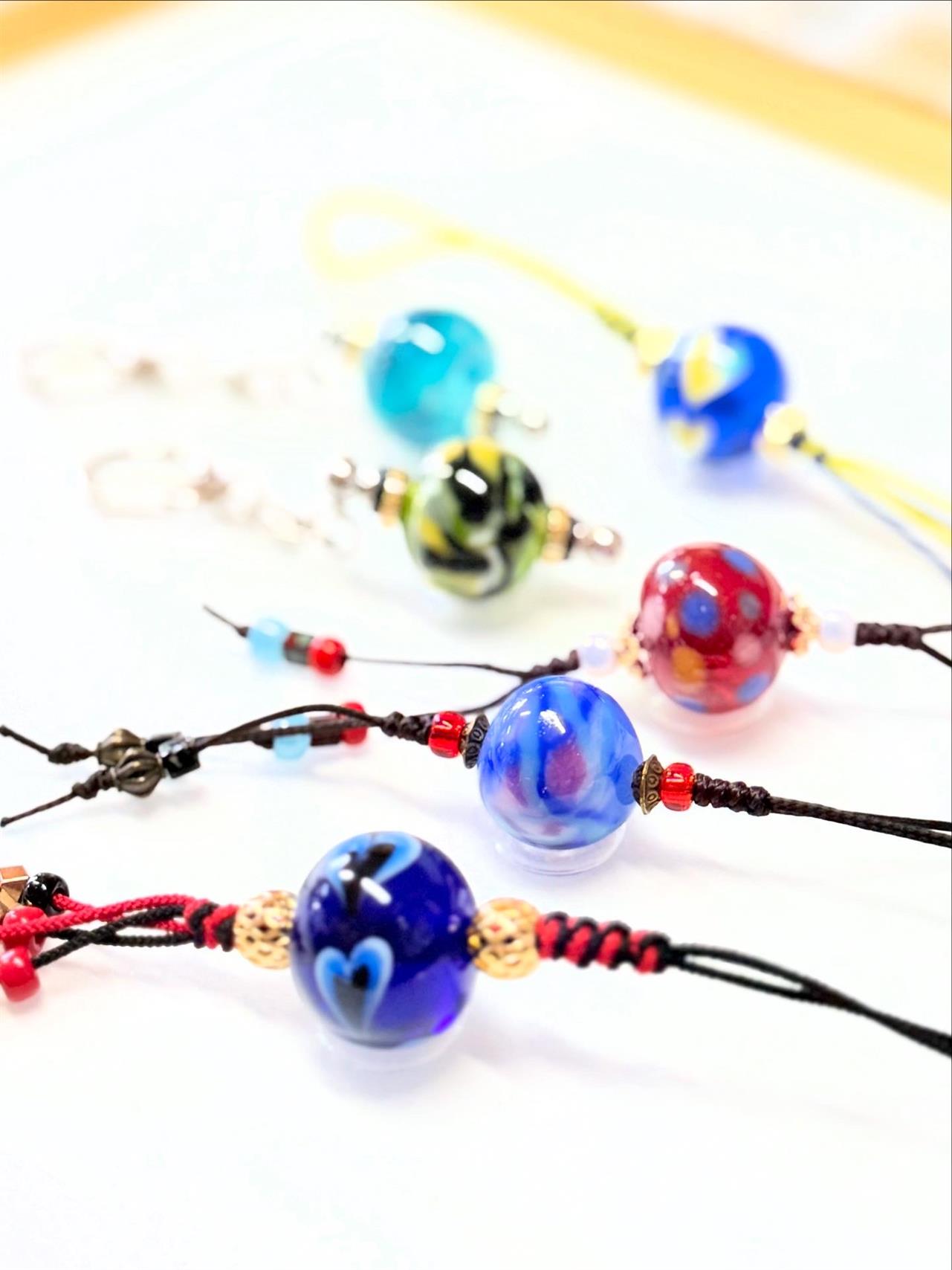 They created their own glass beads and then made them into straps and necklaces—beautiful memories of their Kinosaki trip.