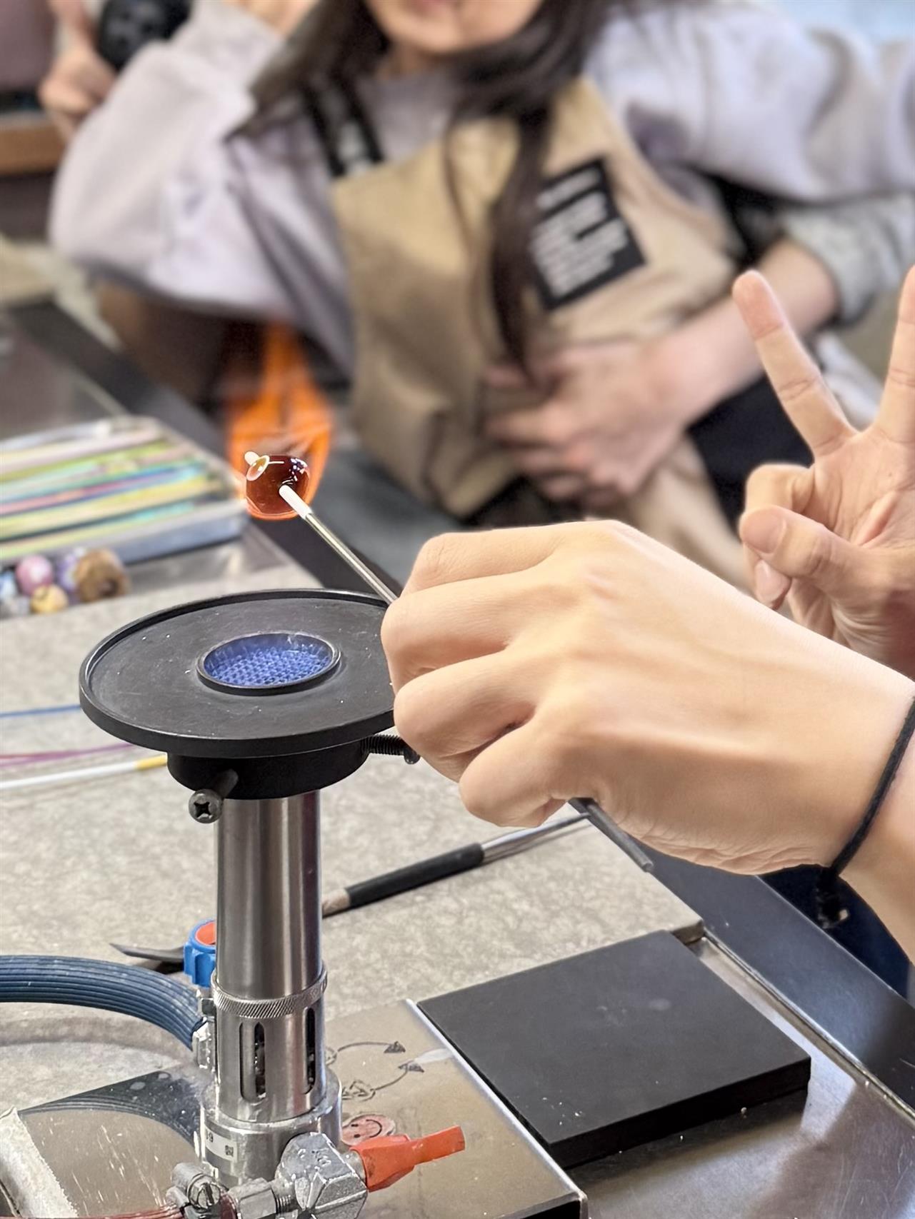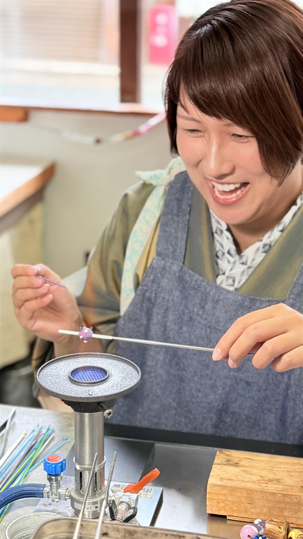 “現代のとんぼ玉はどのように作られているのか” を実際に体験したいと、