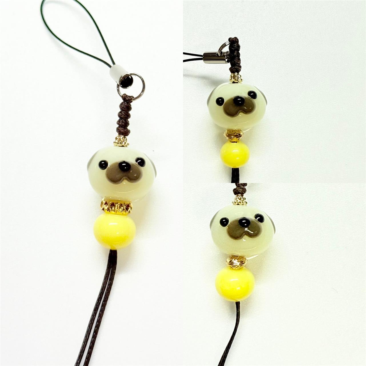 今回はお客様からご依頼いただき、パグをモチーフにしたオリジナルのとんぼ玉ストラップを制作しました。