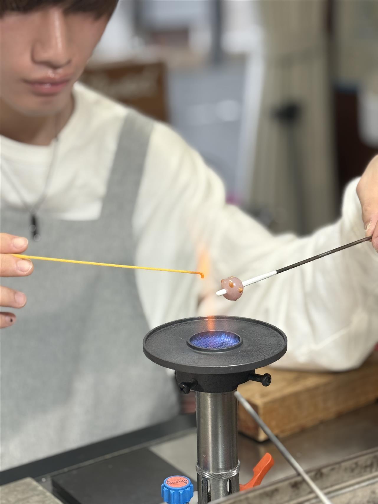 LAMP WORK TASUKUのとんぼ玉体験は、全員で一緒に楽しめる本格ガラス工芸体験です。