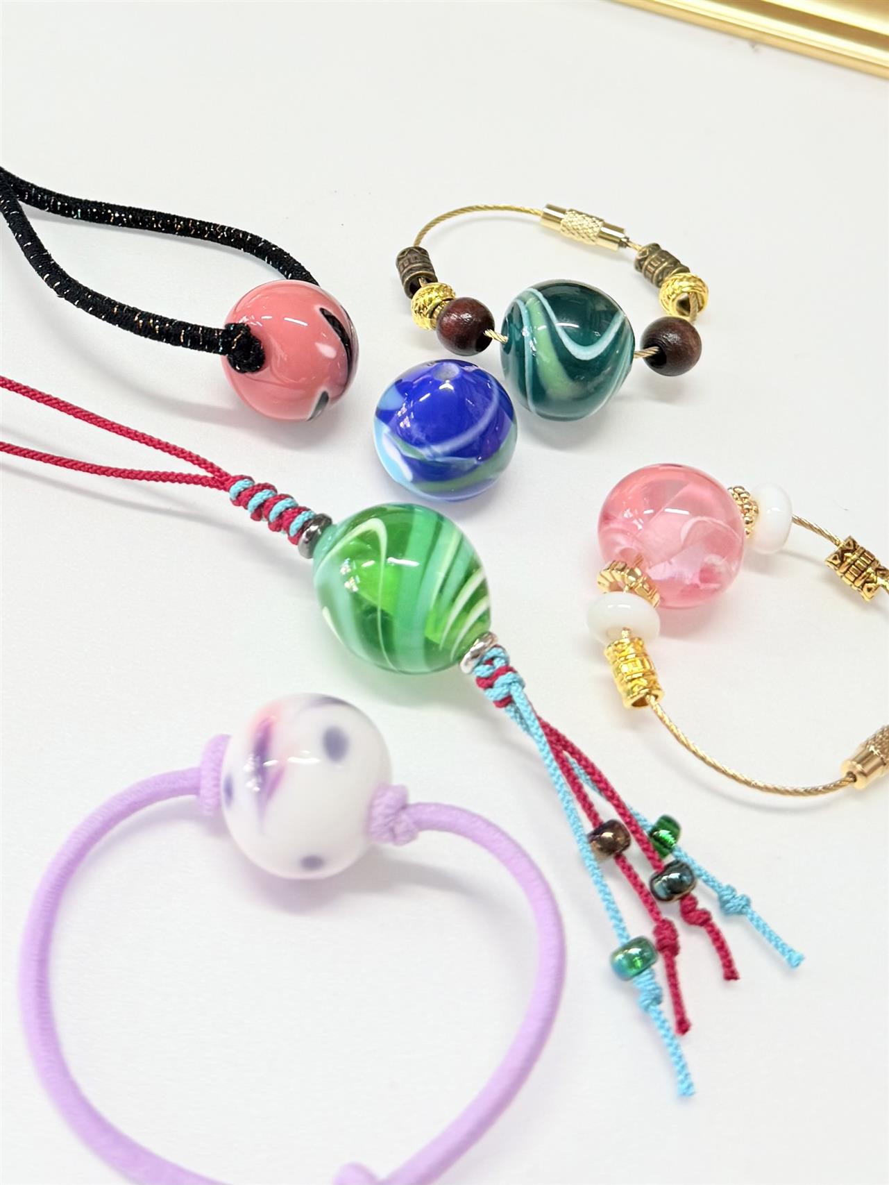 They created their own glass beads and then made them into straps and necklaces—beautiful memories of their Kinosaki trip.