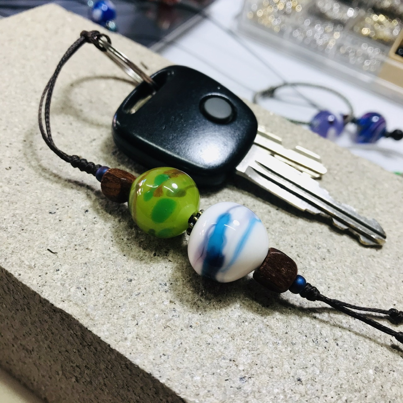 こちらは今日のとんぼ玉体験のお客様の作品です💖