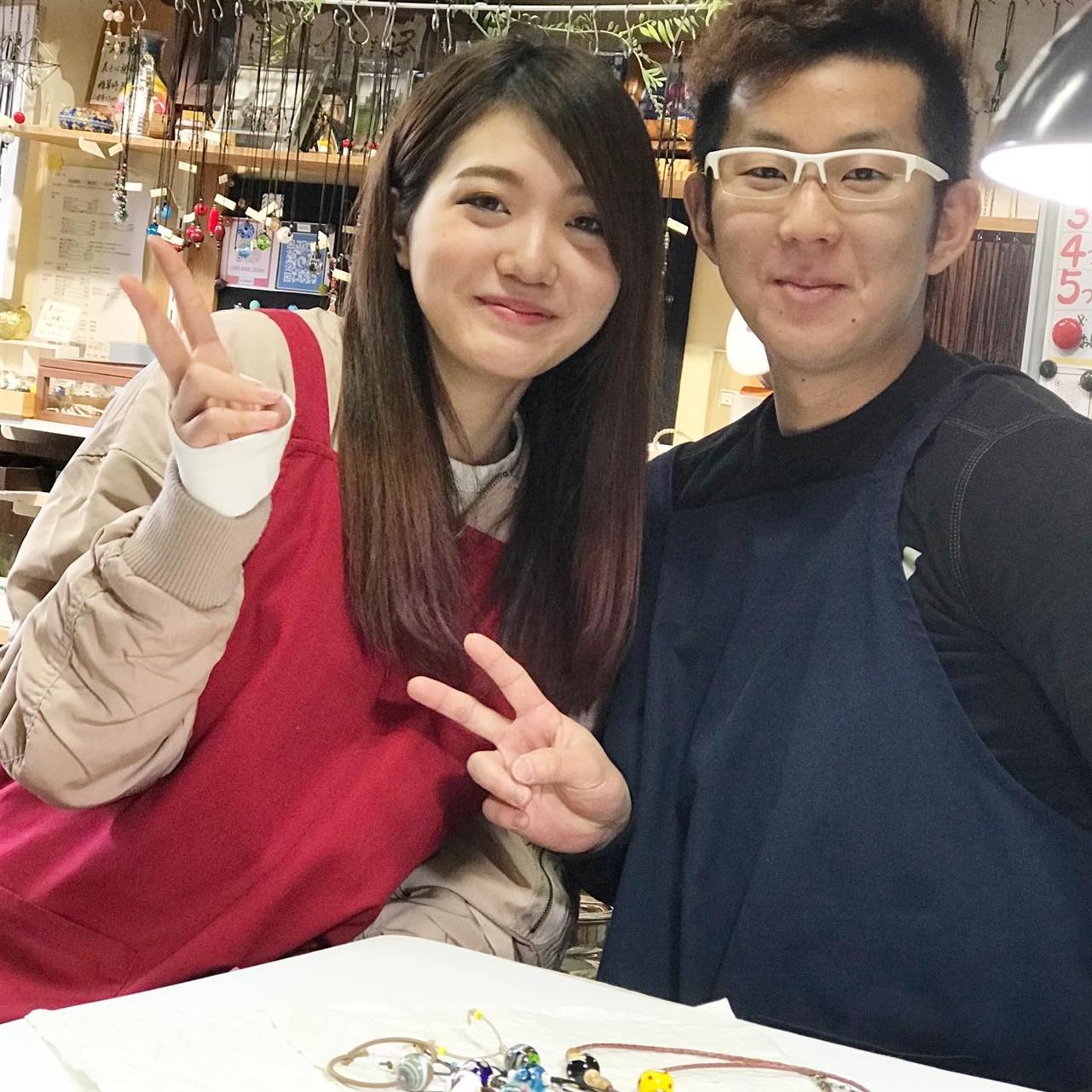 今回は、お二人でたっぷりコースを満喫して頂きました。もちろん初めてのとんぼ玉体験、ガラス選びに模様決めてさぁ〜作るぞ‼︎ そしてお化粧タイムと撮影会😊