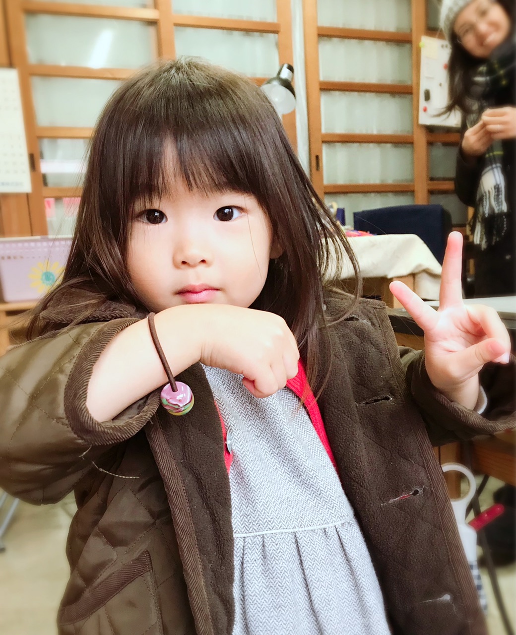 今日のとんぼ玉体験教室で大好きママとパパに大好き色のとんぼ玉を作ってもらったあやあやちゃん🎵2才