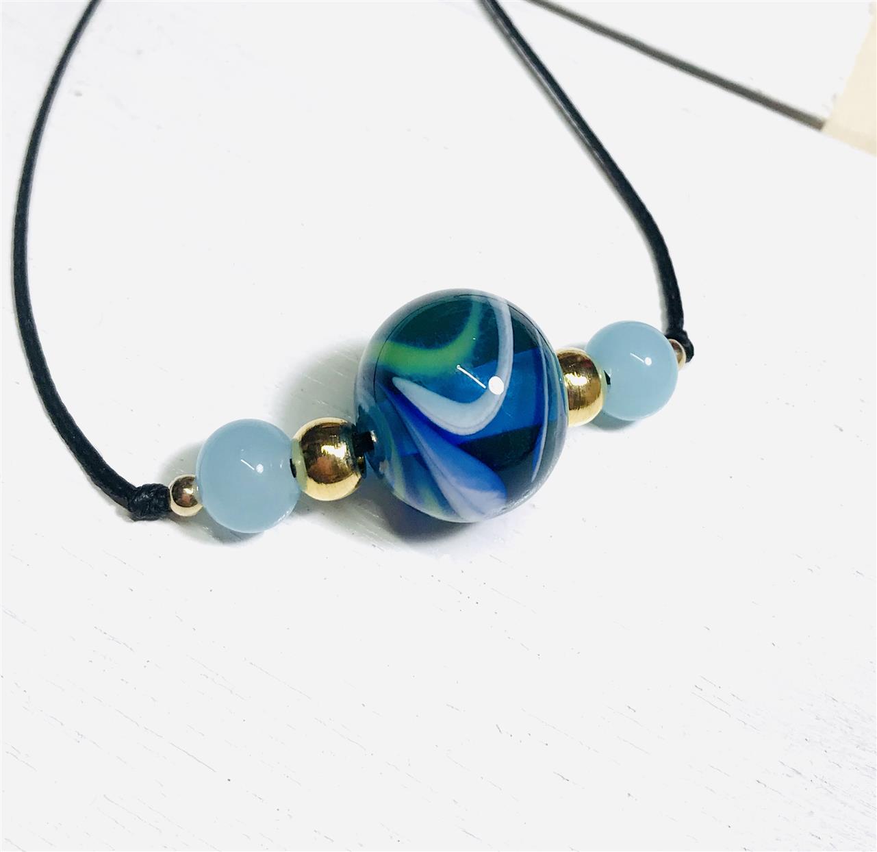 The glass balls you make can be used as necklaces or straps.