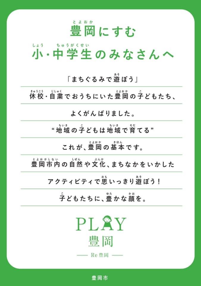 『play豊岡』は、新型コロナウイルス感染症によって外出自粛等で頑張った豊岡市内の子どもたちに