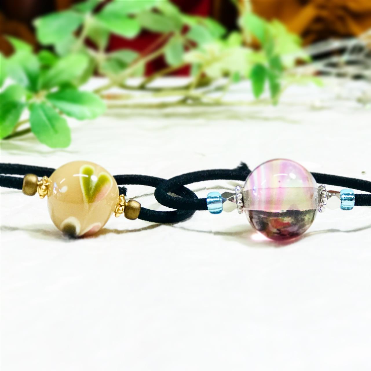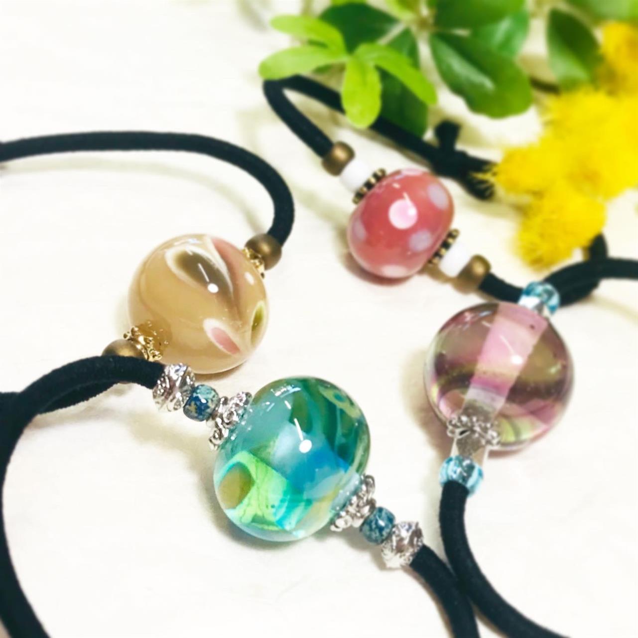 とんぼ玉もとても上手に作られて、仲良く髪留めが出来ました。