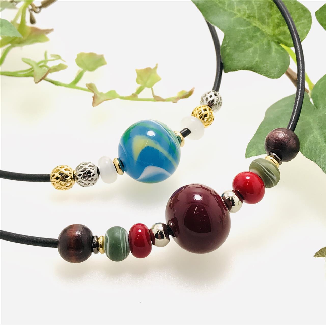 夏の手づくり市で、瑠璃色に輝くとんぼ玉のネックレスに一目ぼれして、購入させて頂きました。