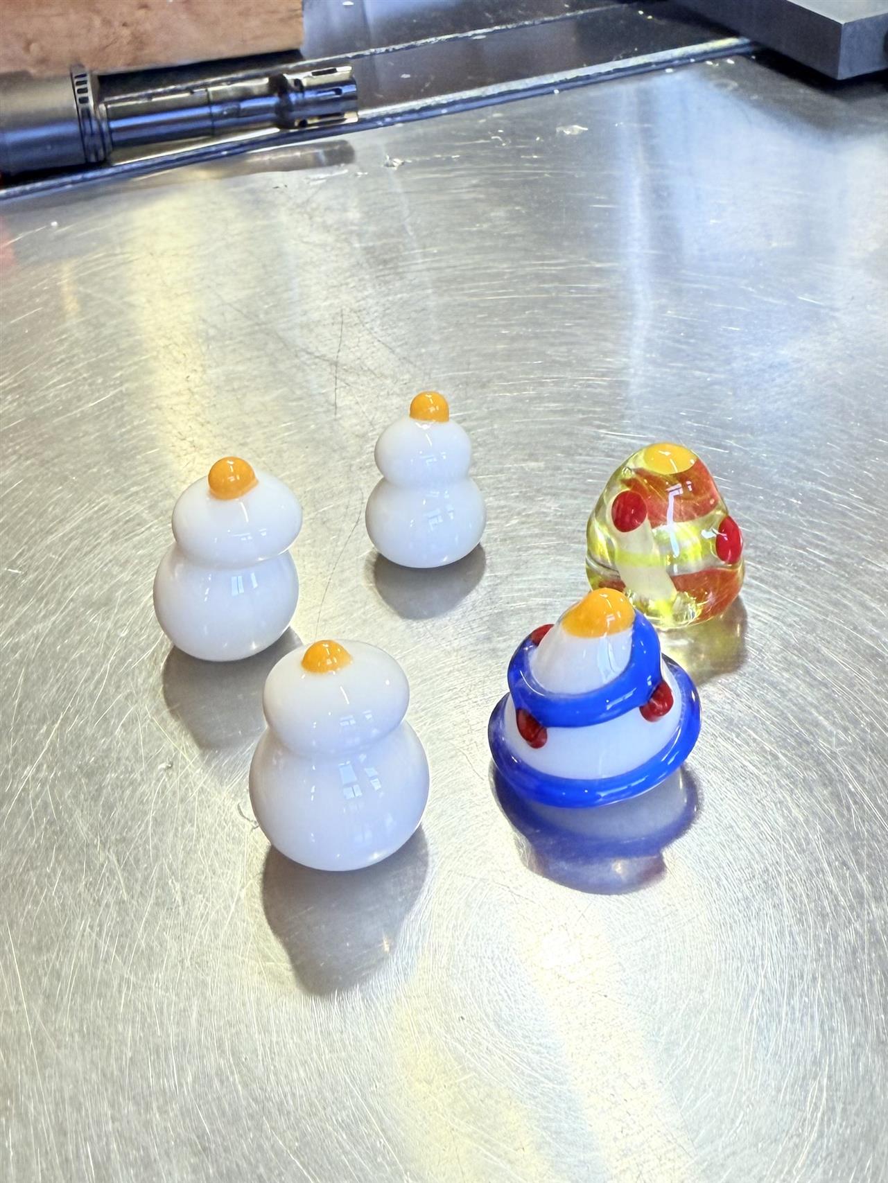 今日は豊岡のランプワークタスクとんぼ玉教室でした。始められて、まだ間がない生徒さんでしたが、ちょっと冒険せっかくなので、クリスマスや年末年始が近いので、クリスマスツリーやお鏡餅を作ってみました。