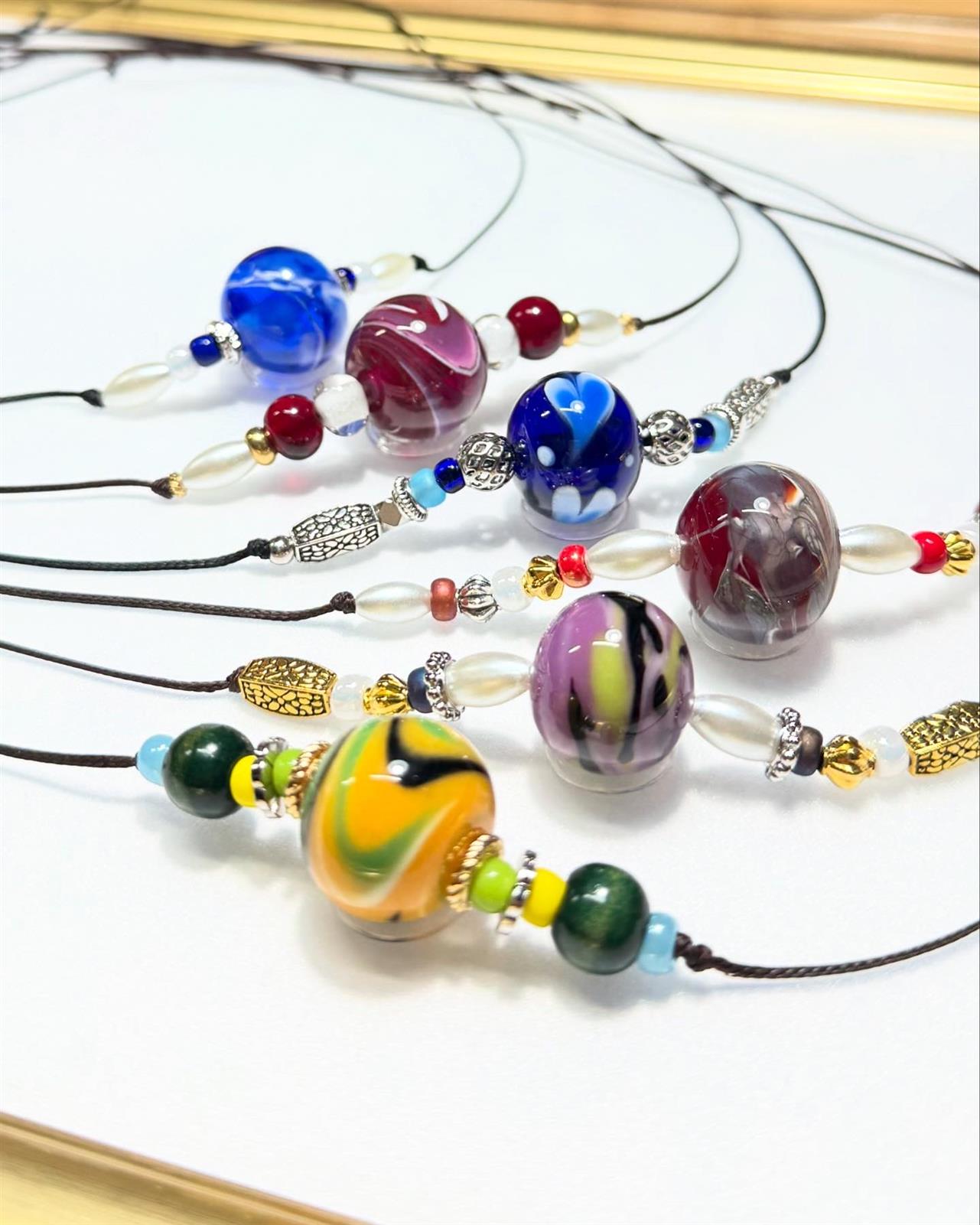 きっかけは以前作られたおばあちゃまのピンクのとんぼ玉ネックレスが凄く気になって、欲しかったそうです。