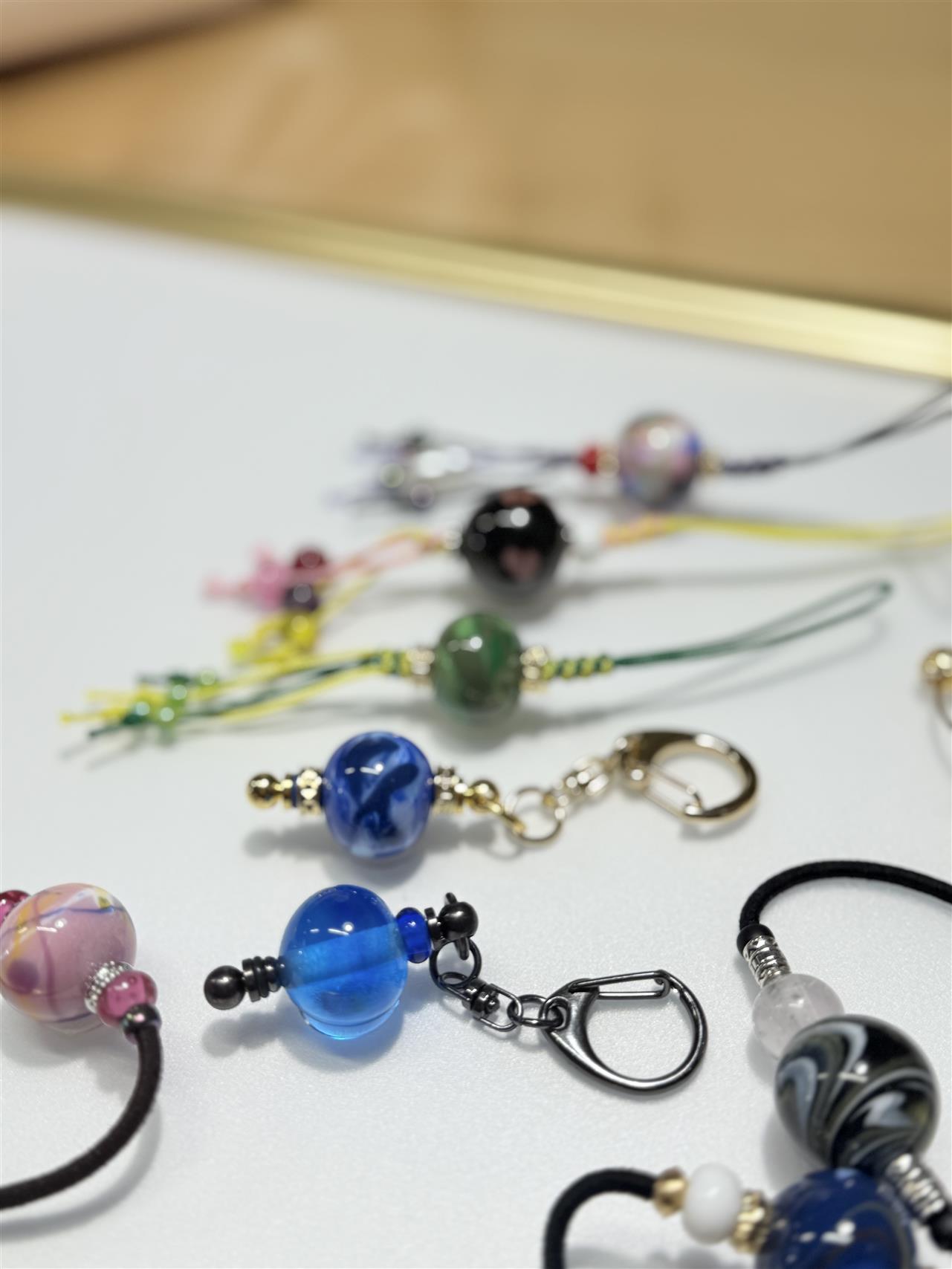とんぼ玉はもちろん体験でご自身で作った完全オリジナルアクセサリーもお持ちです。