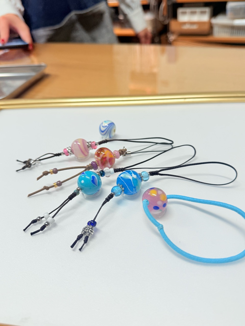 出来上がった作品は、思い思いにネックレスやストラップに。おばあちゃまは「自分に似合うネックレスができた!やっぱり好きなものが作れてよかったわ💕」とおっしゃってくださり、その言葉を聞いて、私もとても嬉しい気持ちでいっぱいになりました。