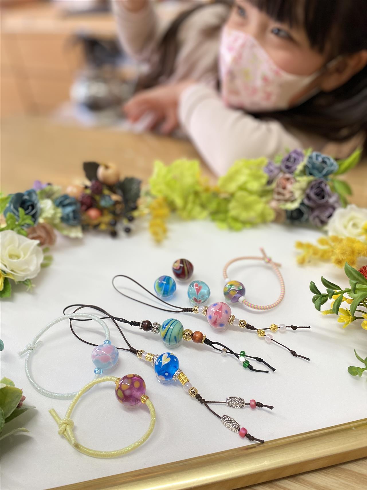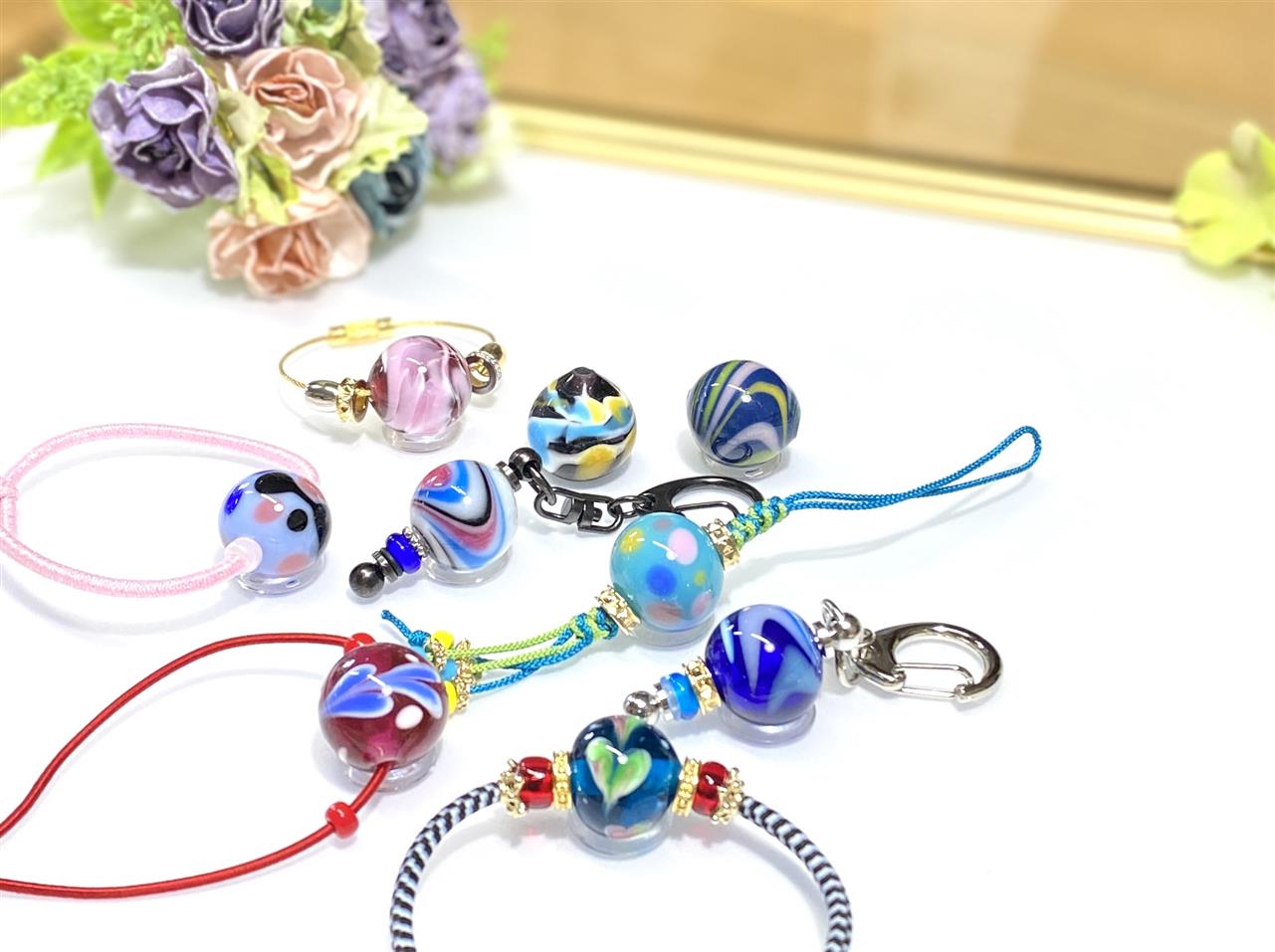 記念にお互いのとんぼ玉でストラップをお作り頂き、交換されました。
