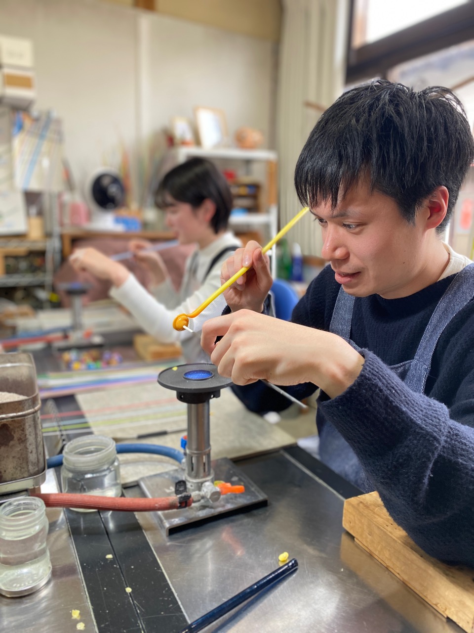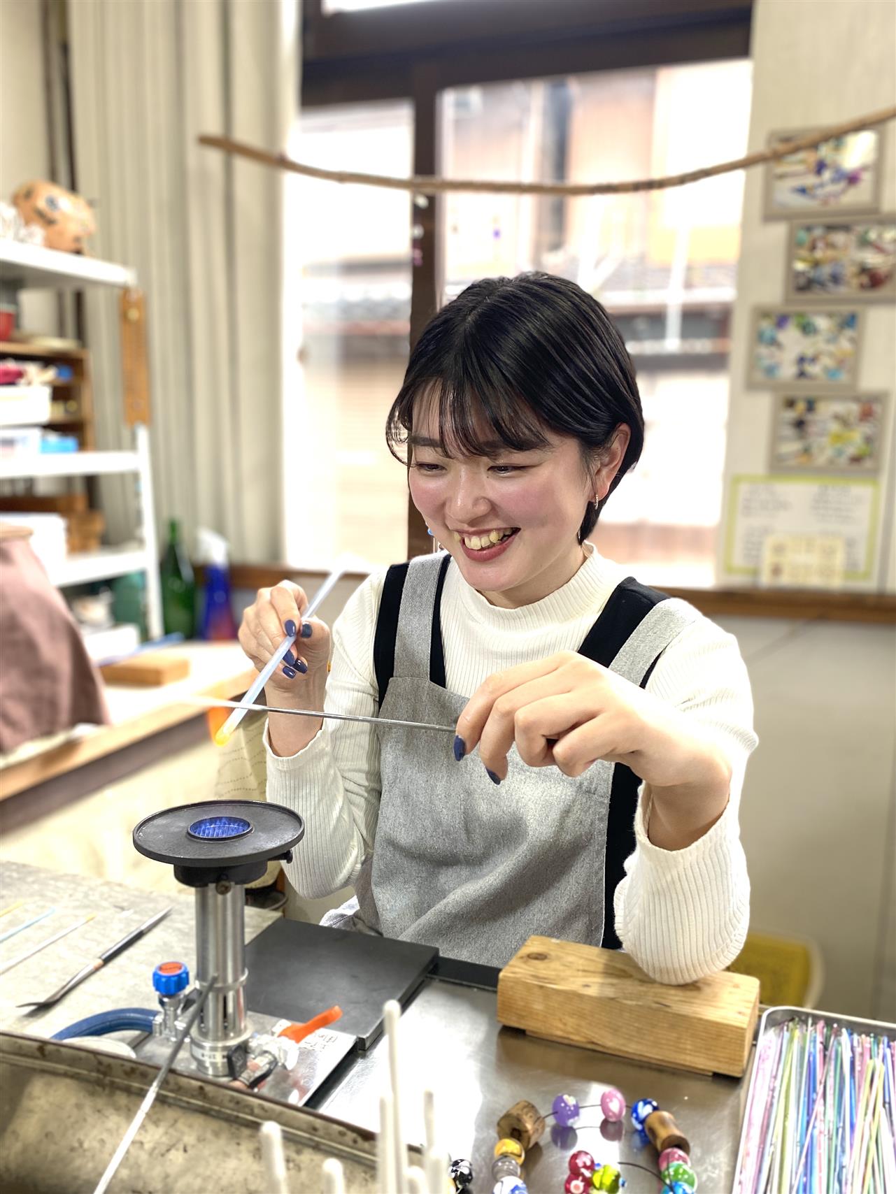 おうち工房LAMP WORK TASUKUです。3連休最終日今日もとんぼ玉作り体験開催中です。