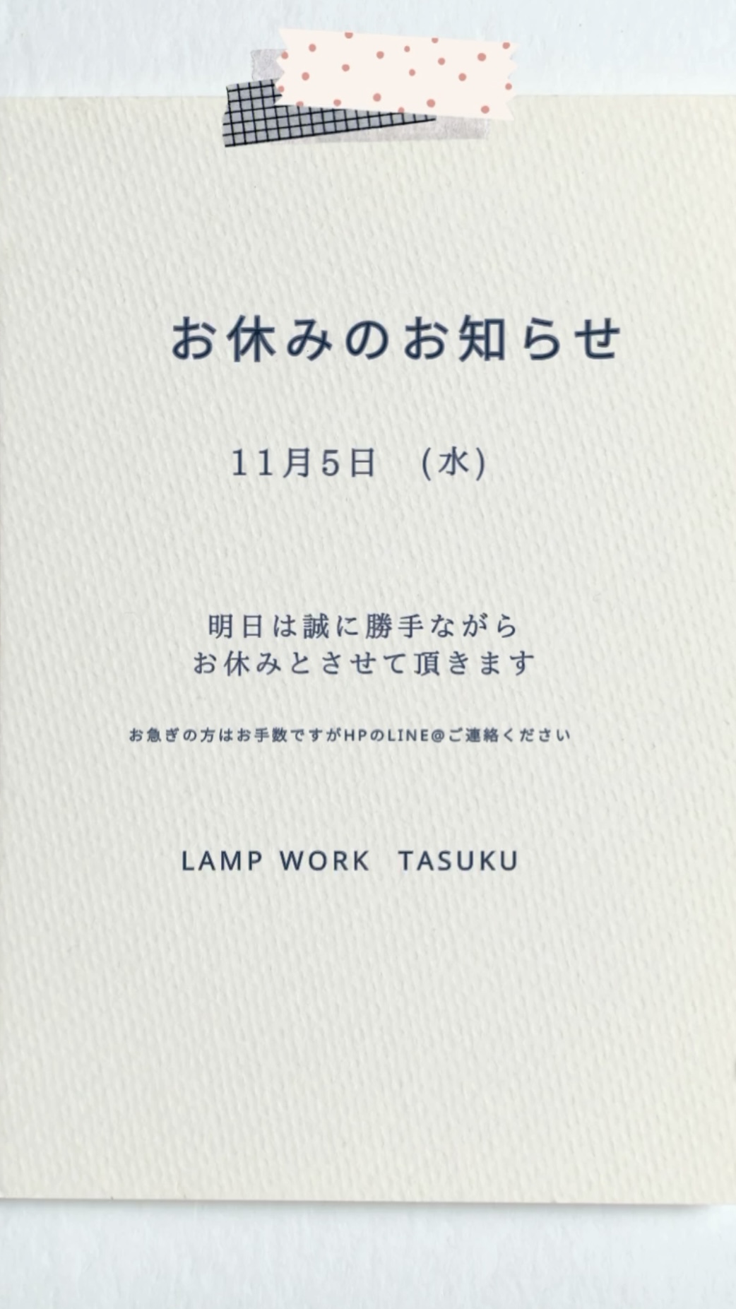 いつもご覧頂きありがとうございます貸切おうち工房ランプワークタスクです。