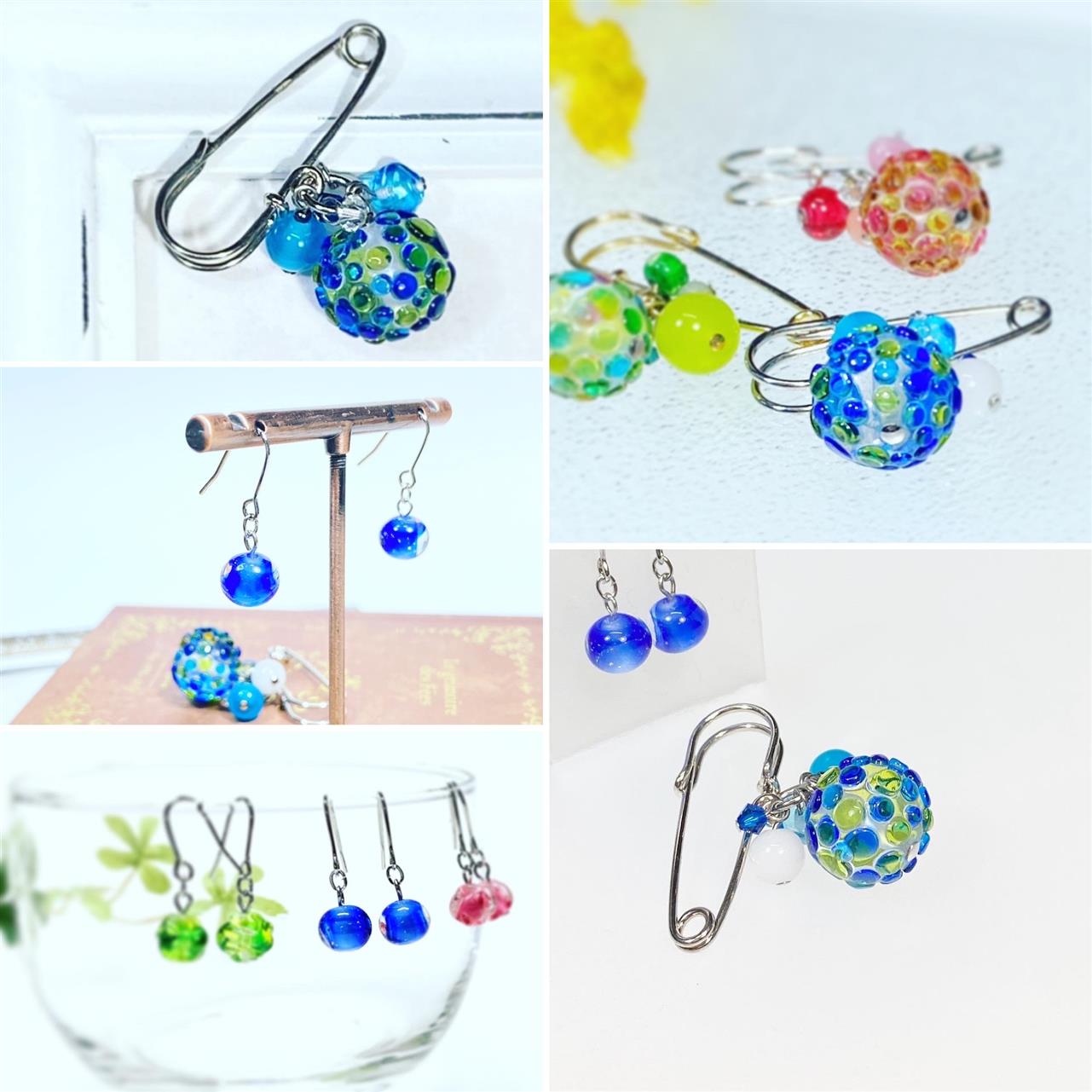 つぶつぶ可愛いとんぼ玉のブローチ&ピアス イヤリング