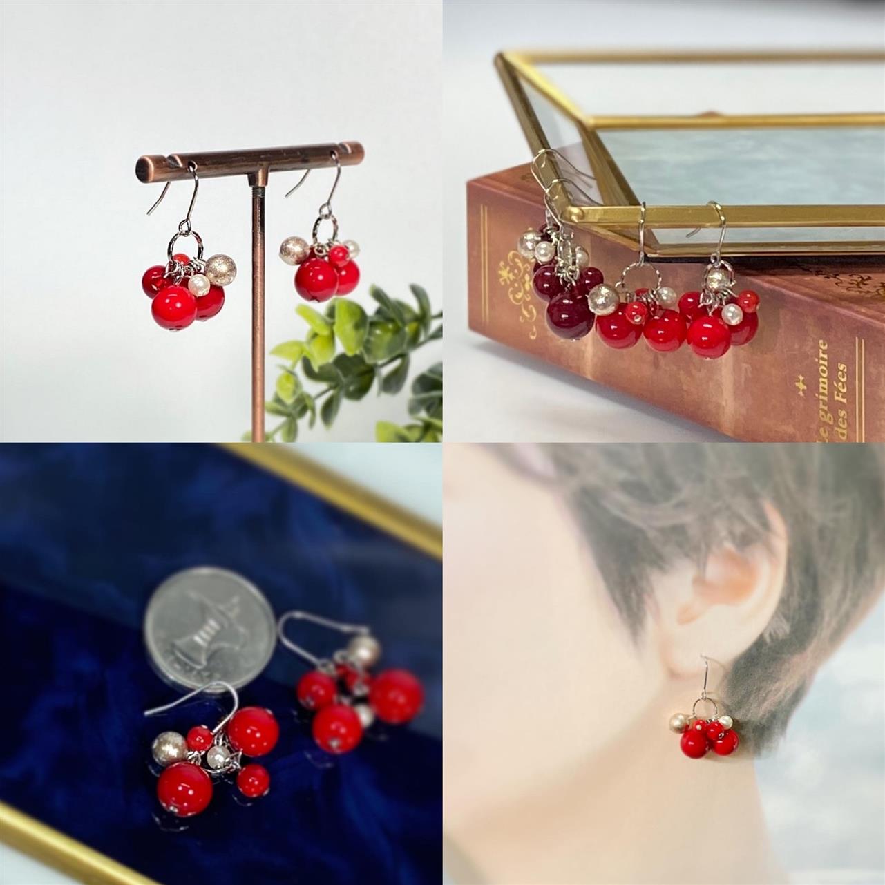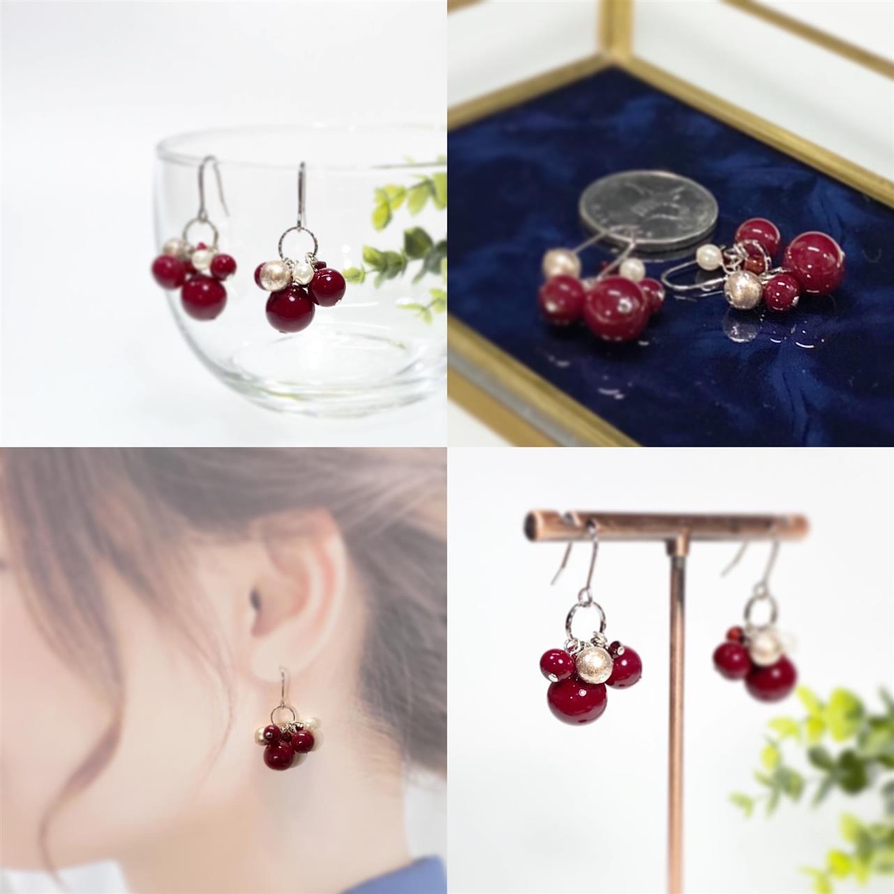 より深みのある赤のとんぼ玉ピアス イヤリング 大人の音色♪