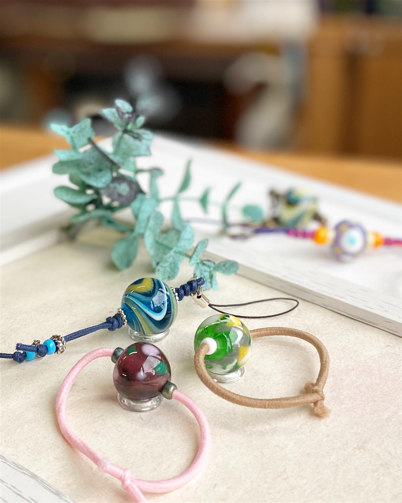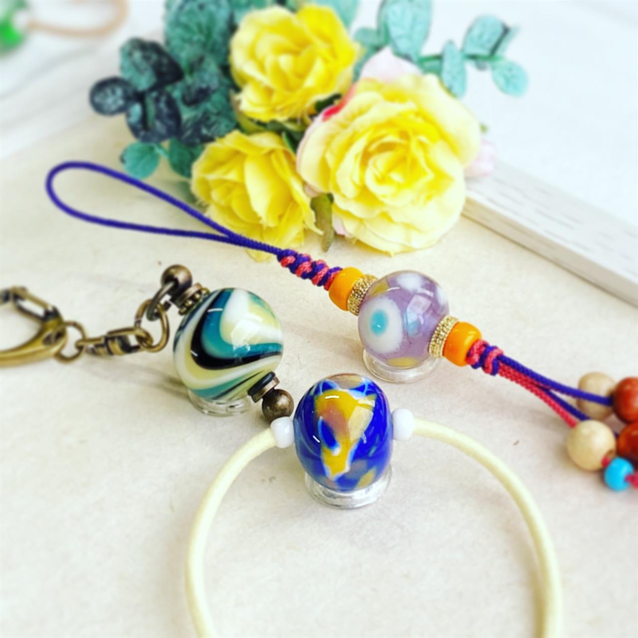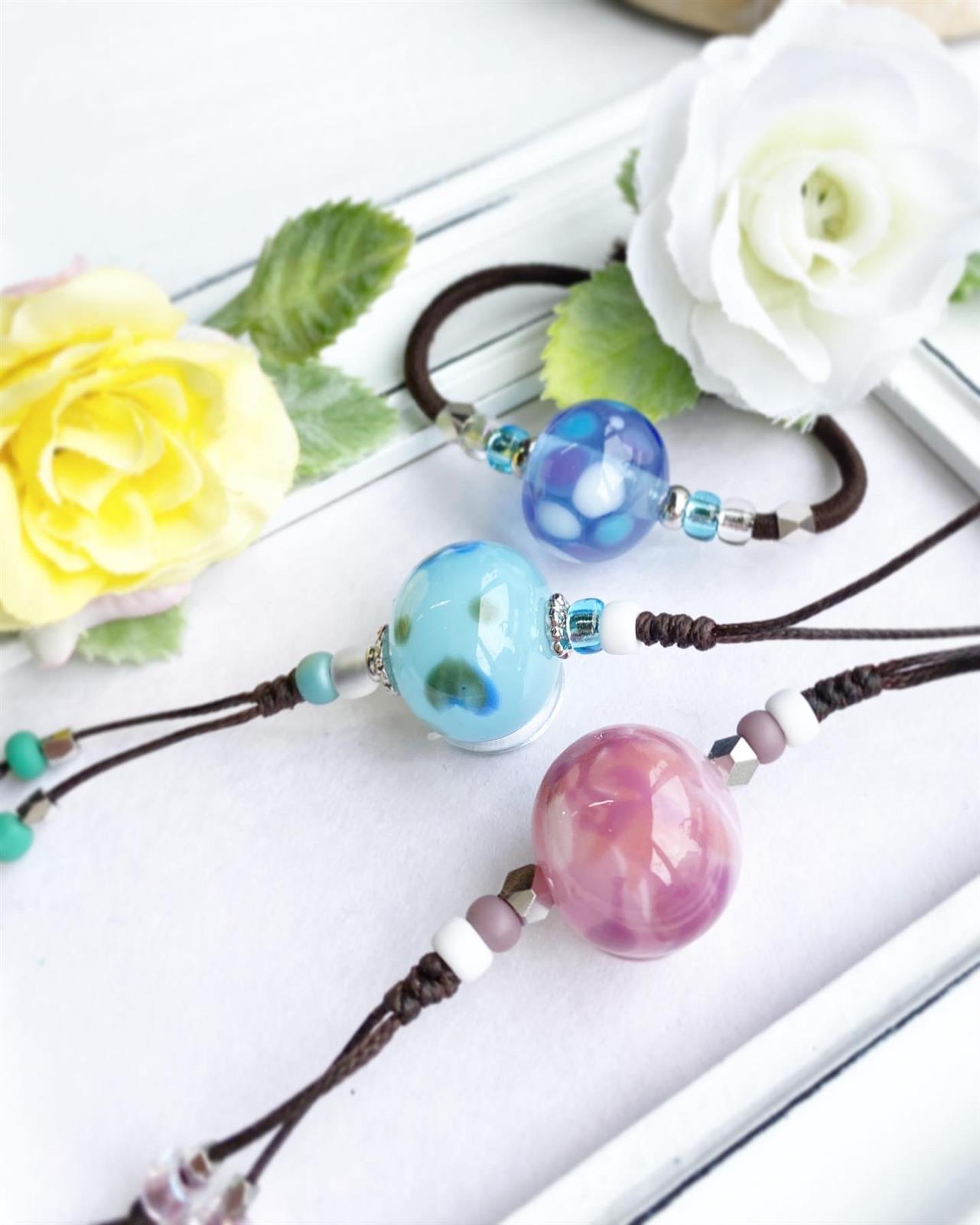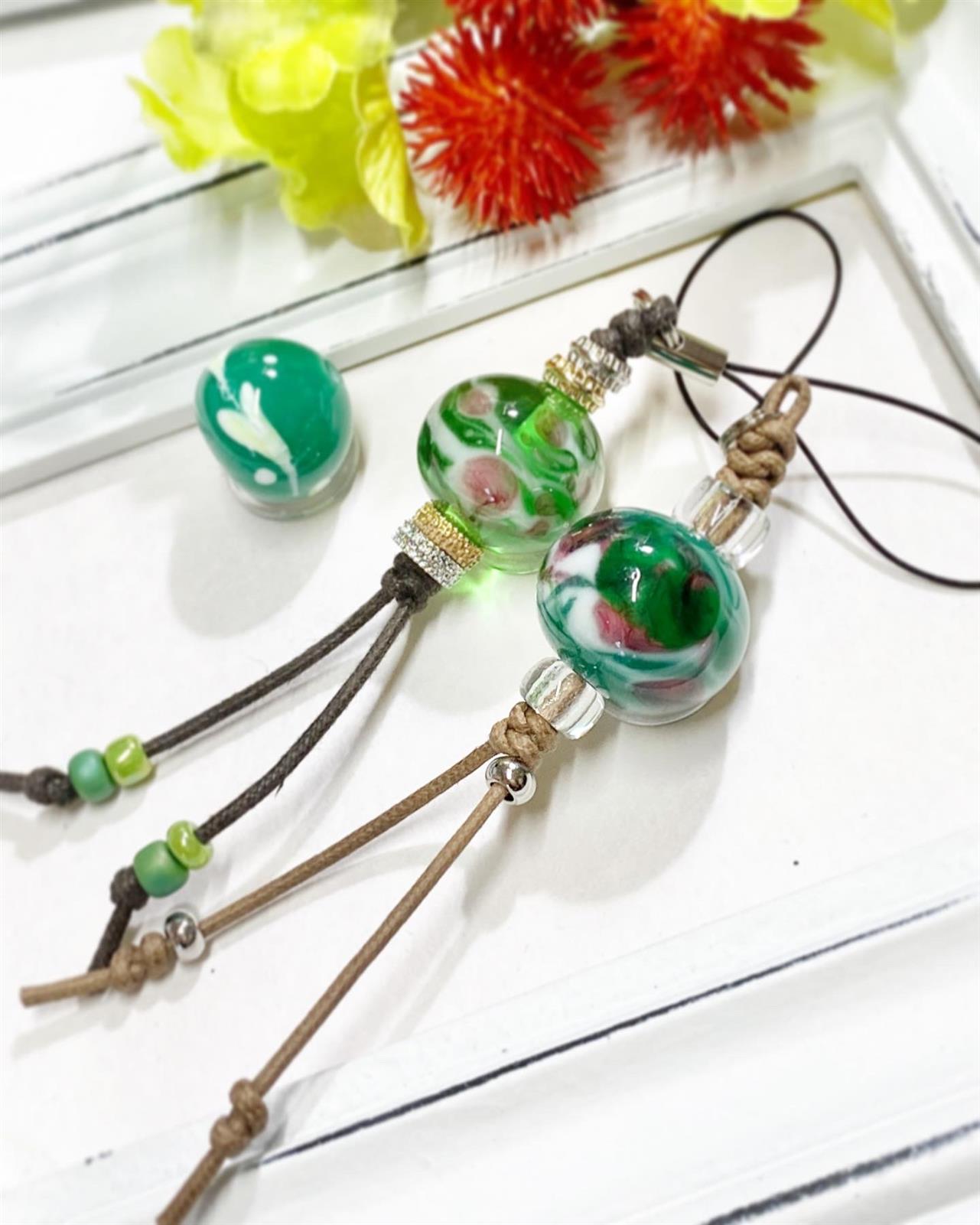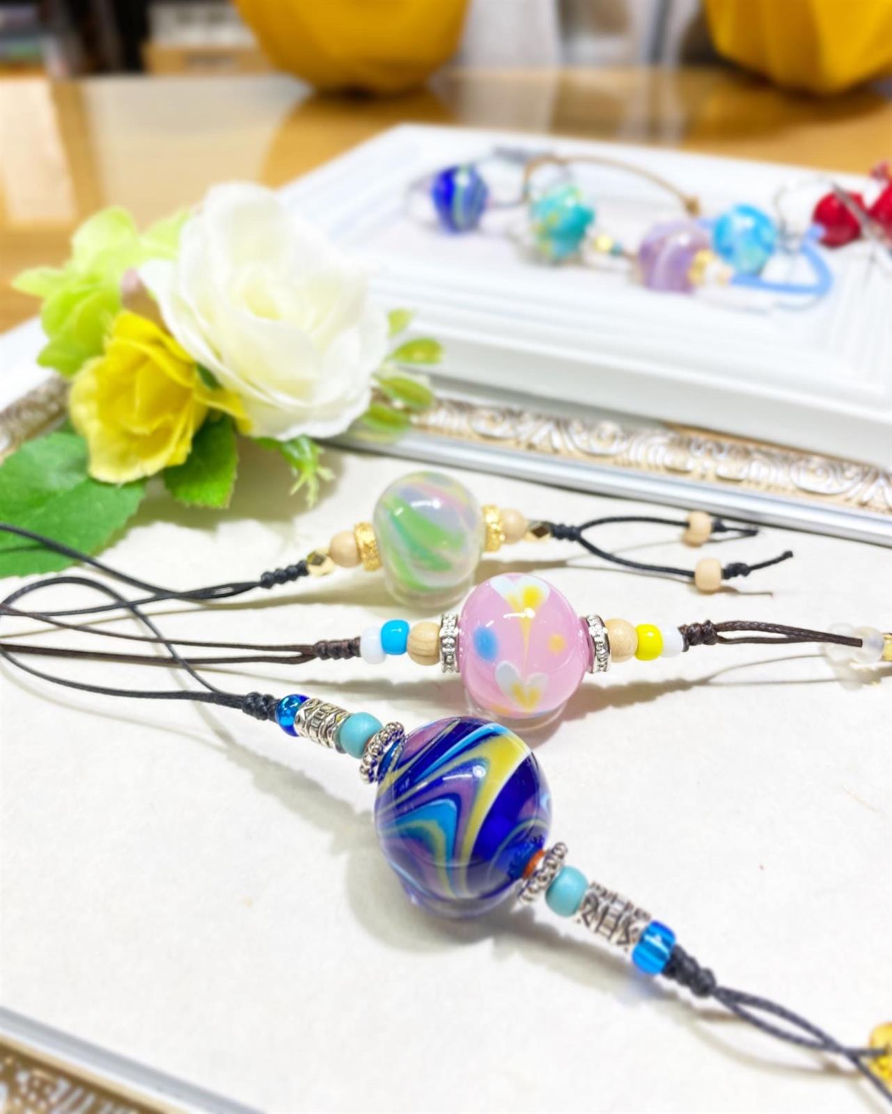 The glass balls you make can be used as necklaces or straps.